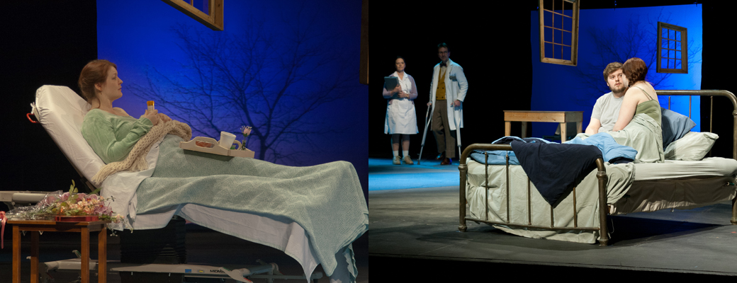 Left: Full Set with preshow lighting. Right: The Doctor and Nurse care for the Woman after her operation.