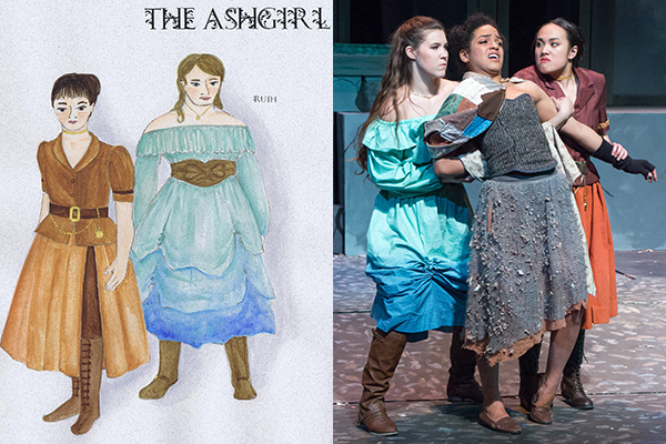 Right: Rendering and production photo for Lucinda, an ugly stepsister. More images available upon request.